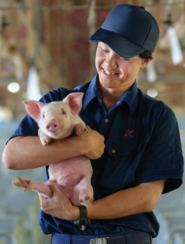 当社は鹿児島を拠点とするカミチクグループに所属しており、お客様に最高の豚肉を提供すべく、オリジナルブランド豚「九州産 柔うま豚メルティポーク」の販売を手がけています。カミチクグループは、エサづくりや繁殖、加工、販売の一貫体制を独自の6次化スタイルで、理想の豚づくりに挑戦しています。